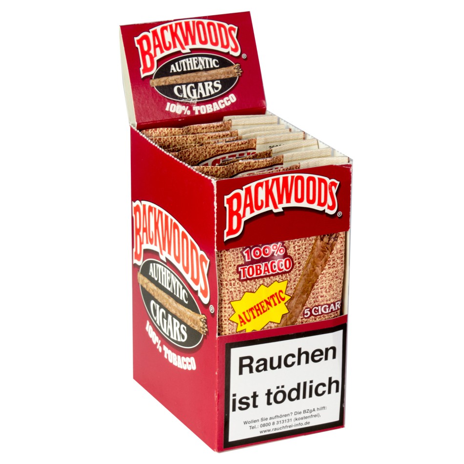Die luftdichte Verpackung beinhaltet jeweils 5 Stück und dient dem Erhalt der Feuchtigkeit und der Frische der Backwoods-Zigarren.