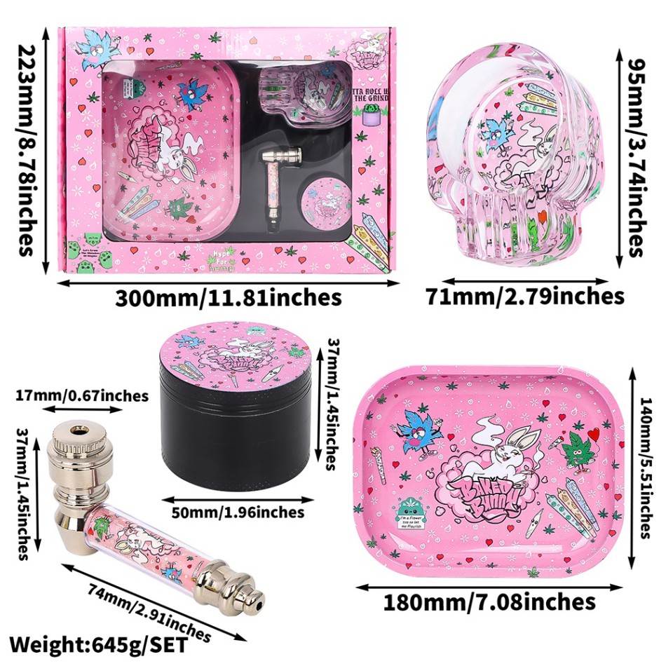 SET ‚Baked Bun‘ – Metallpfeife 7cm + Grinder ø50mm + Rolling Tray + Glasaschenbecher